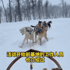 后来是工作人员及时赶到,狗子们才消停下来,继续拉雪橇。