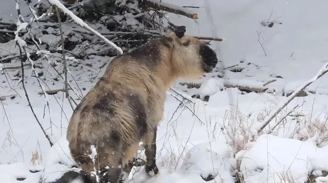 唐家河的冬季气温较低,林海间常覆薄雪,但扭角羚早已进化出一套应对严寒的生存策略: