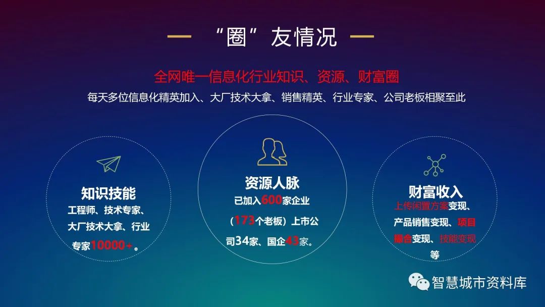 您可以用“音杰智慧城市圈”小程序或网站(http://zhcsq.com/)找智慧行业资料、找公司、找产品、找人脉、找渠道、考证书、拓人脉等。智慧城市圈一个全国化信息化从业者自己的“圈”