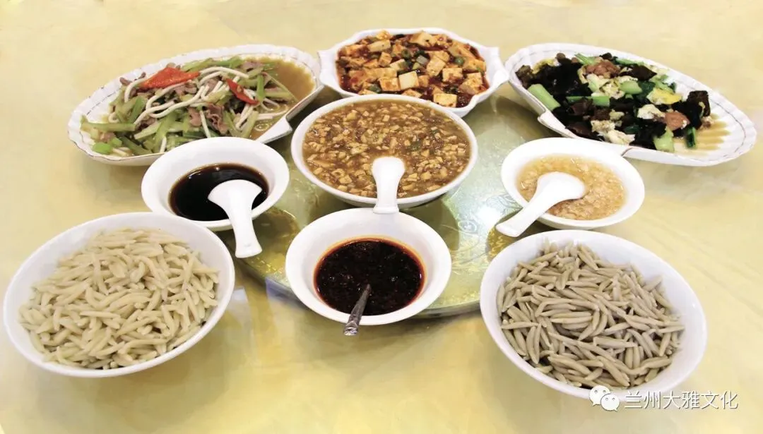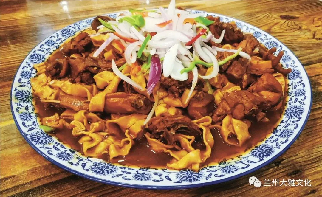 把面条揪成形似炮仗的小段,煮熟出锅后再与豆腐、青菜、粉条及卤肉一起炒烩而成。佐以民乐紫皮大蒜,具有浓厚西北风味。