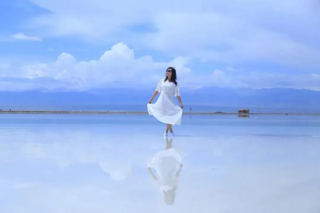 青海茶卡盐湖,红色和白色的衣服比起来,红色显得突兀,像是自然的一个闯入者;白色就很和谐,和周围的景色融为一体,是自然的一部分