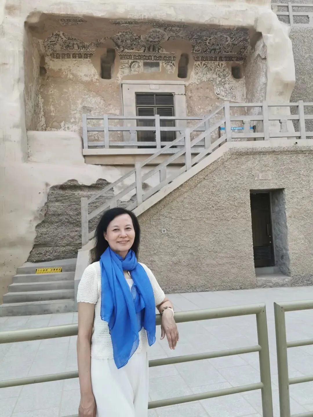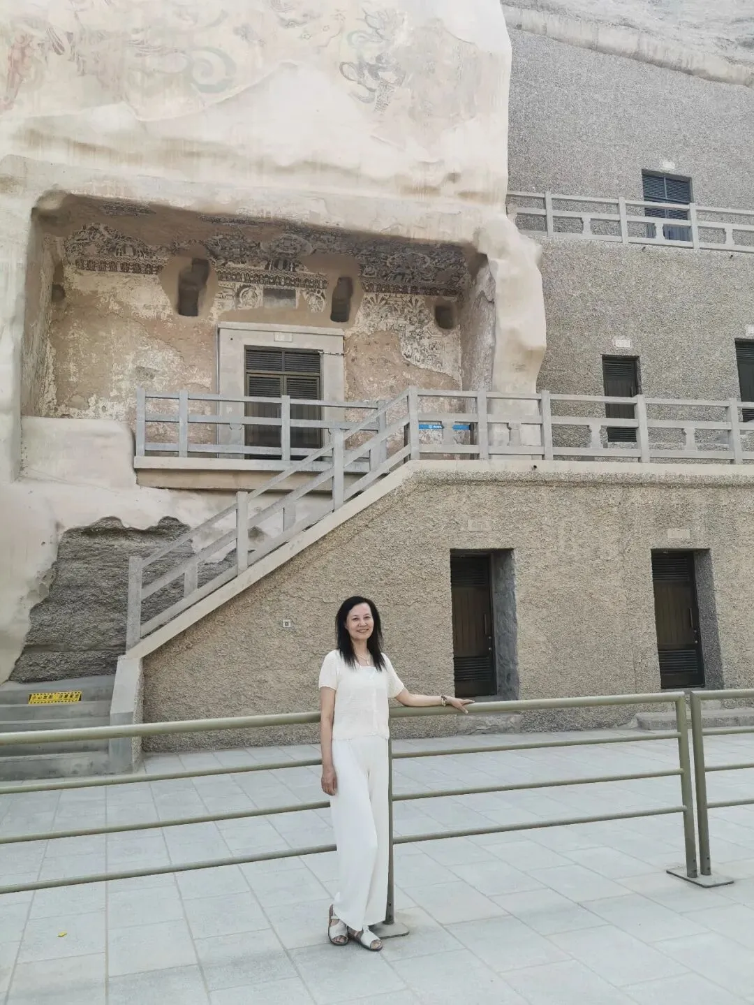 敦煌莫高窟,白色的衣服,和环境没有形成反差。只好用围巾调节一下,才有了层次感