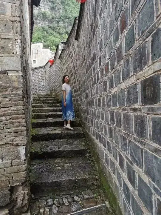 贵州镇远古镇,手工扎染的改良式旗袍,在幽深的、古色古香的小巷里,人与环境完美融合