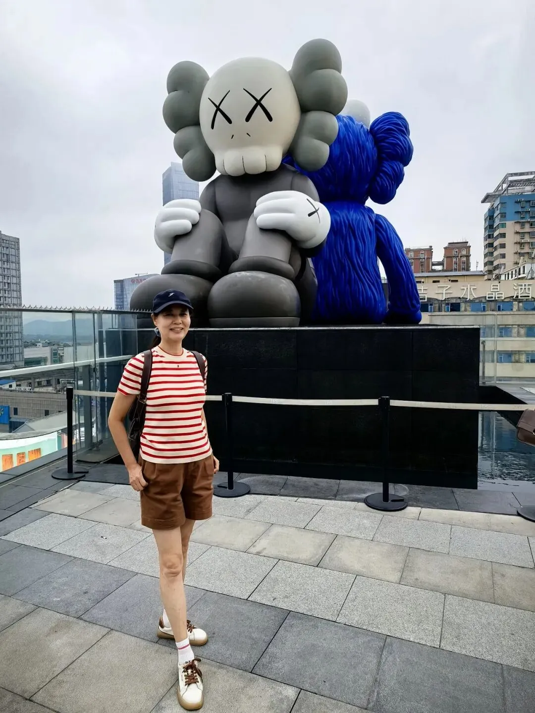 长沙街头,棕色短裤配红白条纹的针织衫,很好的融入了这个城市充满活力的氛围