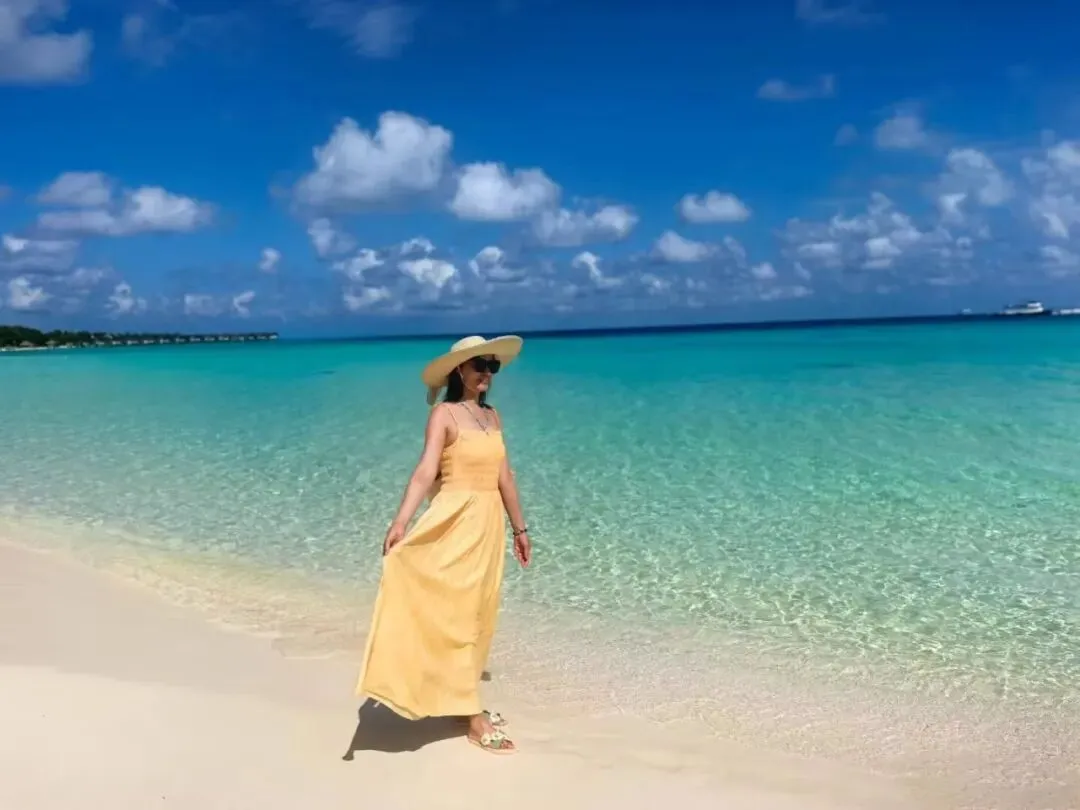 马尔代夫的度假游,当然是和海岛风光相配的吊带裙、大草帽、墨镜、夸张的耳环和项链了