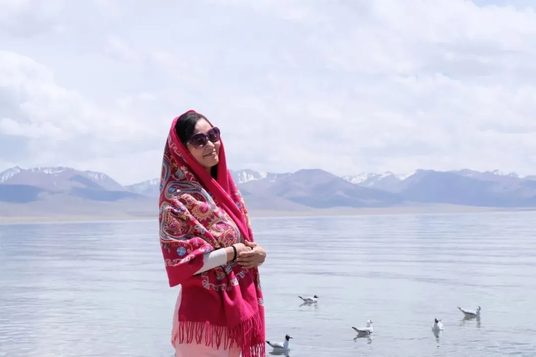 西藏纳木错,一条民族图案的披肩,一下就突出了西藏的特色