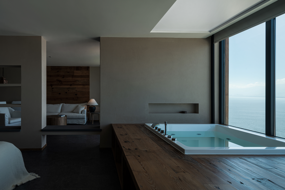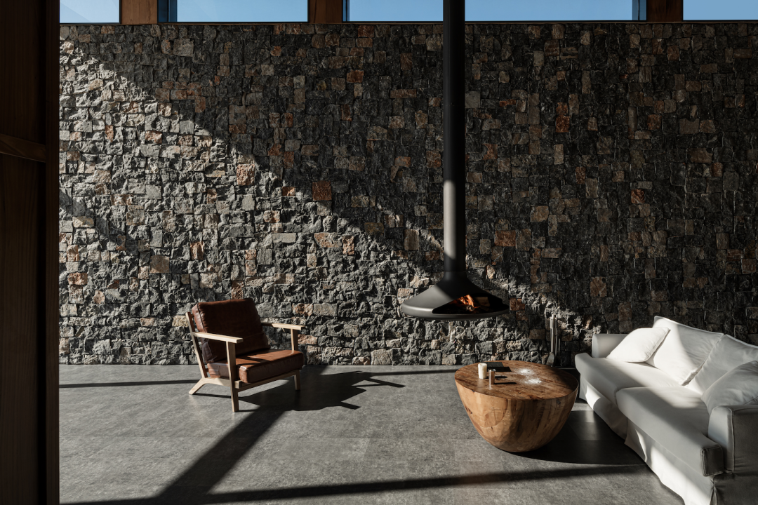 由于山脉地形的凹凸起伏,房屋的设计也随之错落有致,确保每间内室都拥有绝佳的开阔视野,让设计充分融于自然。