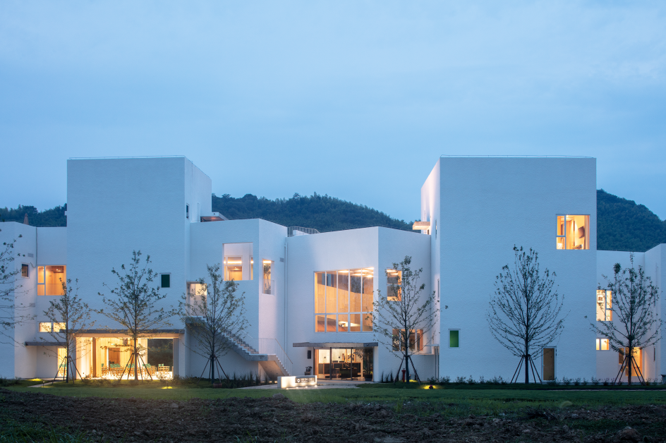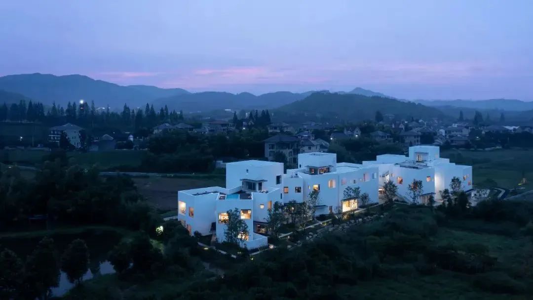 这是位于浙江湖州莫干山旅游度假区的一家民宿,由 16 栋白房子交错组合而成,每个房间的朝向、高低均有不同,因此也造就了每间房内独特的风景。