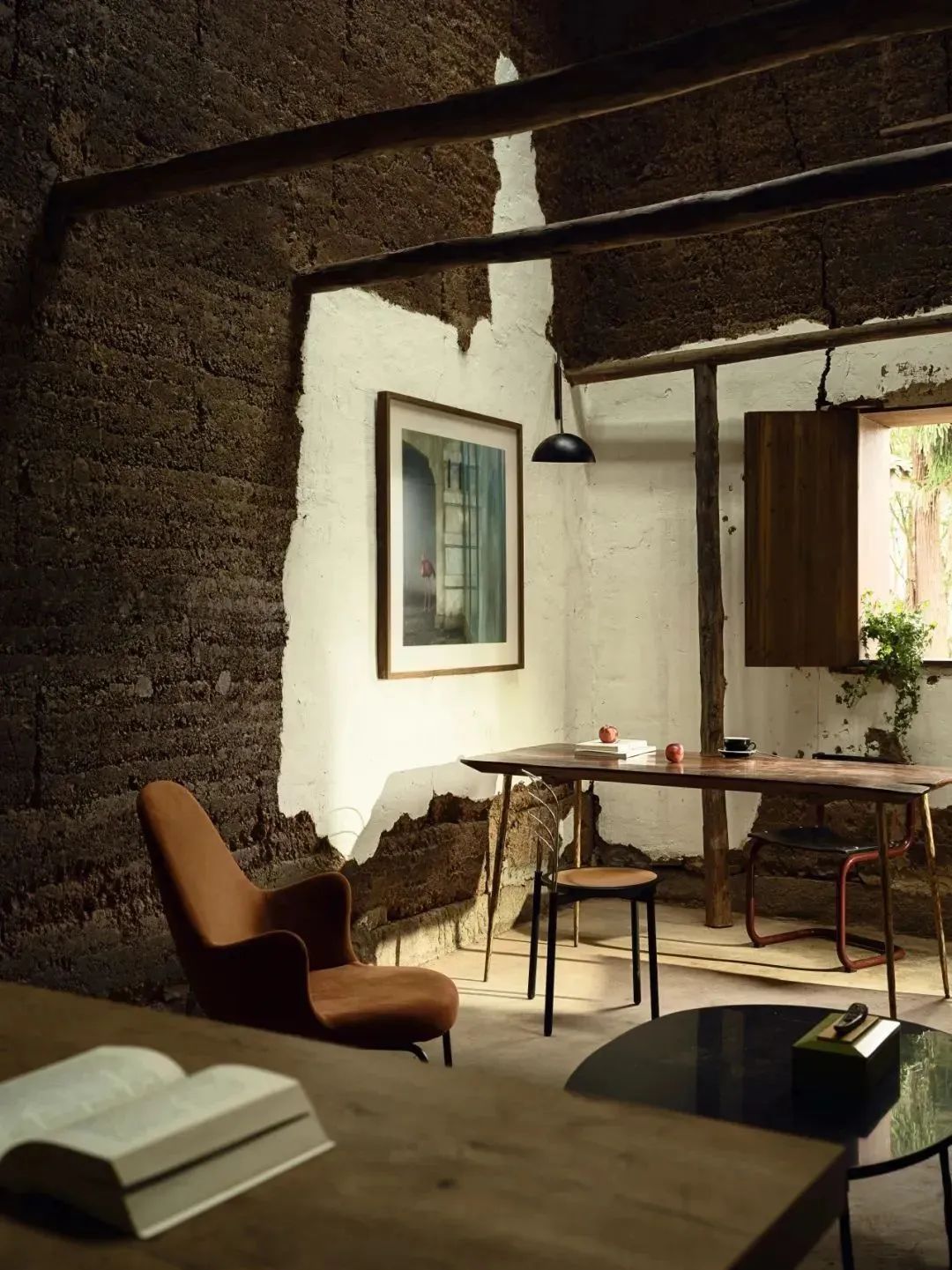 老建筑的历史风情在民宿中很好的保留了下来,原始的土夯墙与木制框架承载着历史的岁月痕迹,古建筑的保留实则是在保护当下人们对于过往的想象。