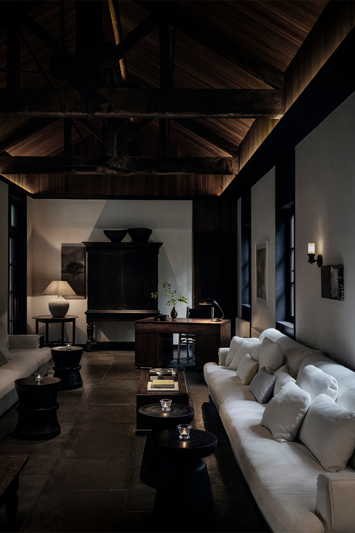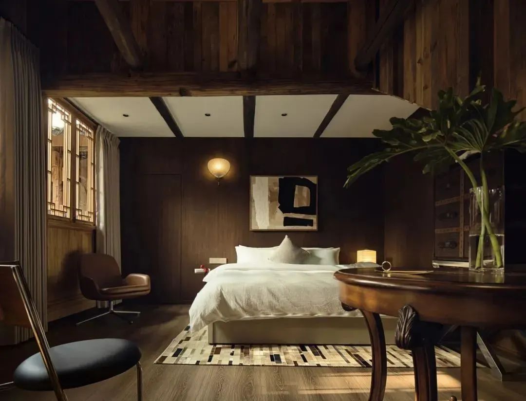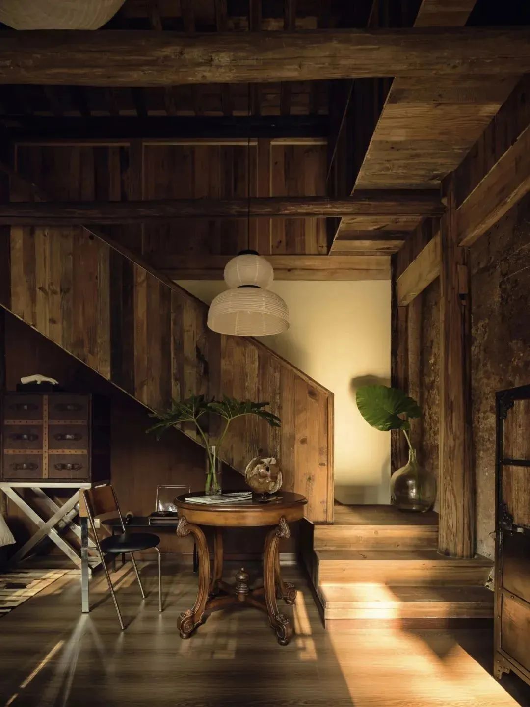 而步入室内后,则会发现古色古香的外墙中,竟存在着极具现代色彩的设计。在这里让传统与现代共生,重新焕发出新生命力。