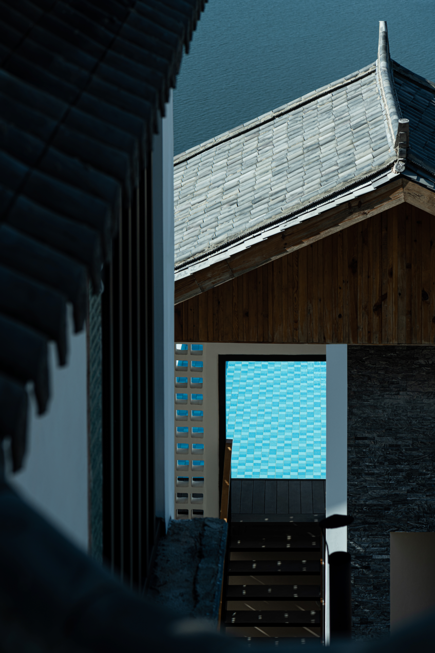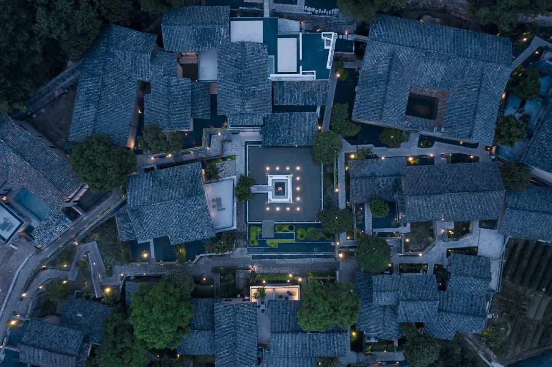 俯瞰整个民宿空间,周围的建筑紧紧包围着中间的方形水池,呈现发散姿态。“天圆地方”的传统秩序观念,在此得到延续。