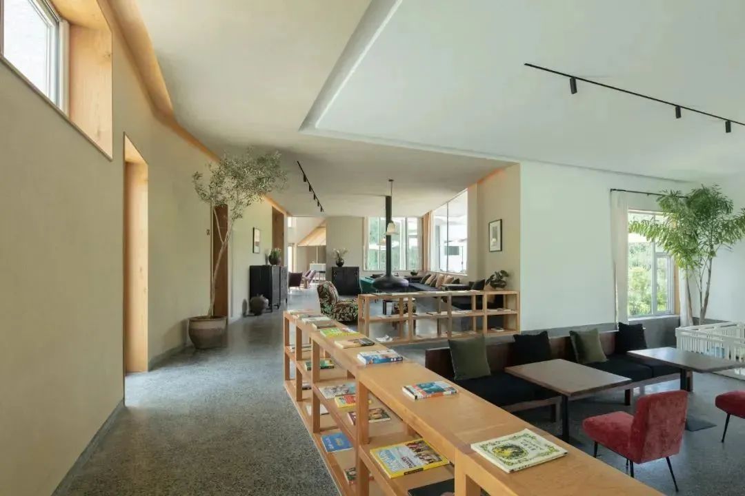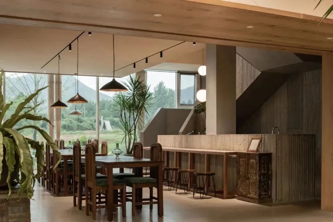 坐落在田野间的这家民宿,不仅仅只有居住用途,还包含了餐厅、咖啡厅、会议室、游泳池等多元化公共空间,实现度假一条龙服务。