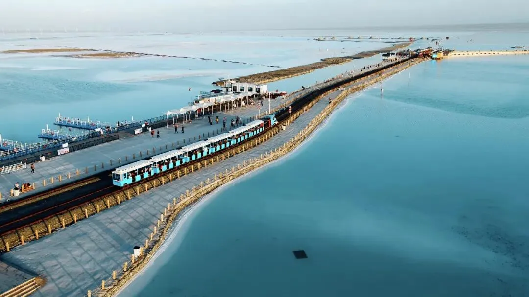 茶卡盐湖是国家AAAA级旅游景区,位于乌兰县茶卡镇。它是固液并存的卤水湖,被誉为“中国的天空之镜”,蓝天白云、雪山倒映在湖中,如诗如画。游客可以乘坐轨道小火车深入湖心观光,欣赏盐花,还能领略3000多年大青盐的发展历史。
