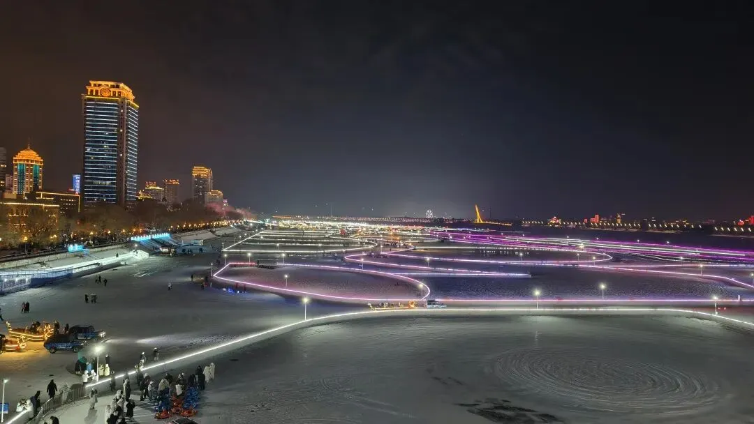 第八届哈尔滨松花江冰雪嘉年华,以“冰天雪地·欢乐同行”为主题,景观设计融合了“两山”理念与2026农历马年的“龙马精神”文化。园区东起滨洲铁路桥,西至九站沙滩,创下了历届规模之最。