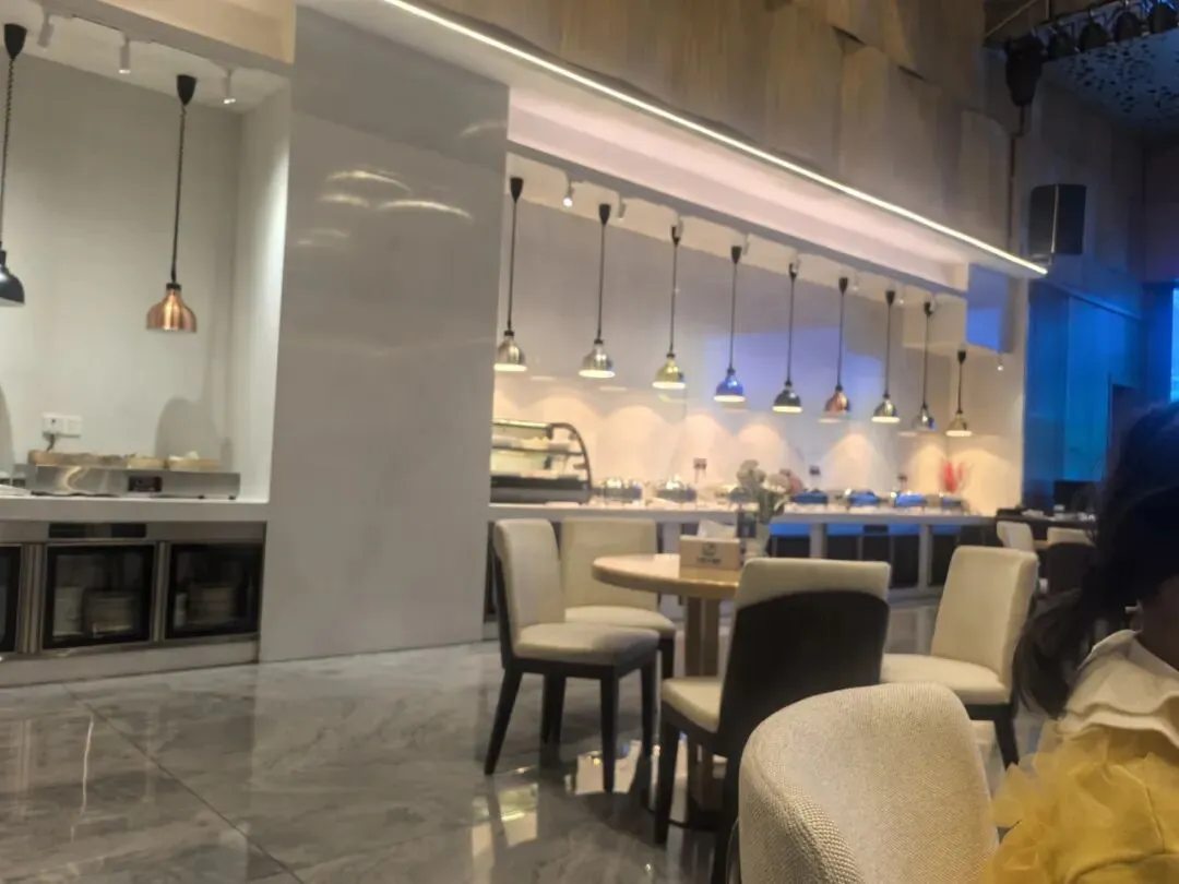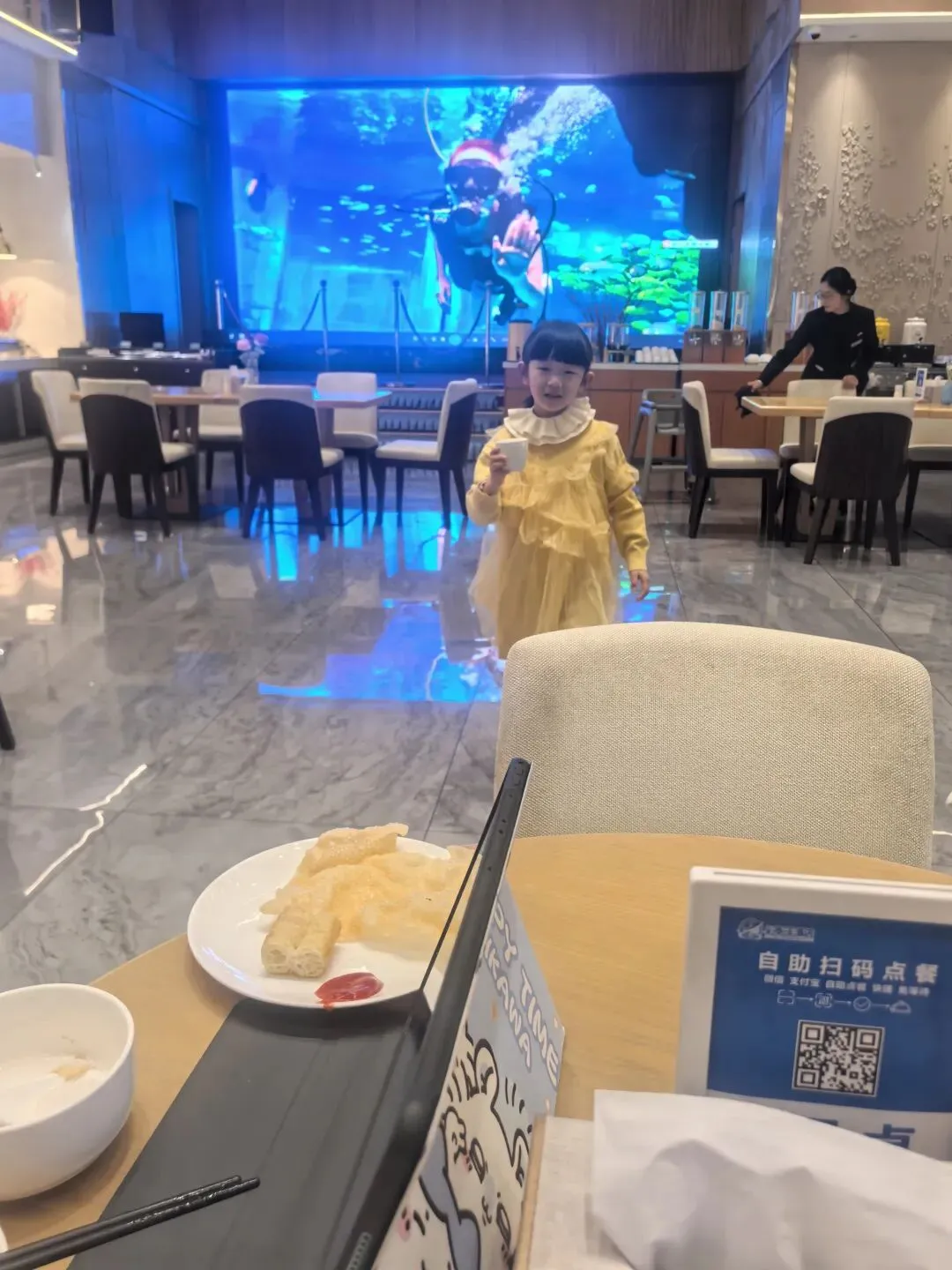 我和妈妈一起去酒店一楼的餐厅吃自助早餐。
