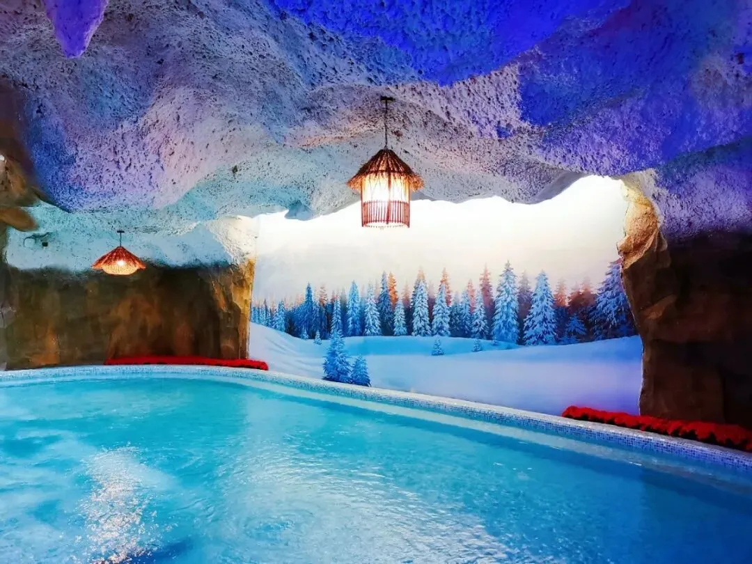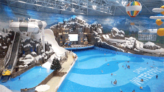 成都融创水世界总建筑面积4.3万㎡,是以冰川奇景、藏羌秘境为特色,融玩水设备、天然汤池、休闲SPA于一体的大型室内汤池水乐园。水世界全年室内温度28°C以上,水温恒定保持在33°C ,更有四大主题区,冷暖搭配陪你嗨玩一夏。