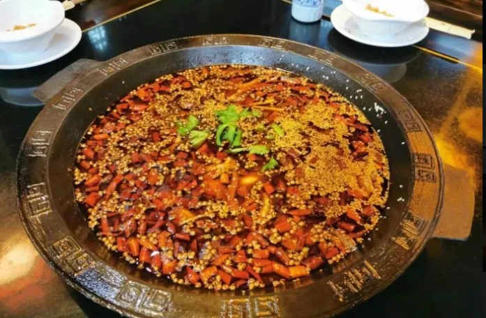 这家店的特色充满了熊猫元素和当地风格,一盆一盆端上来,有趣极了。