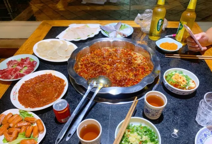 正宗的重庆火锅,麻麻辣辣,裹着厚厚辣椒面的牛肉,一片就让你辣得过瘾。