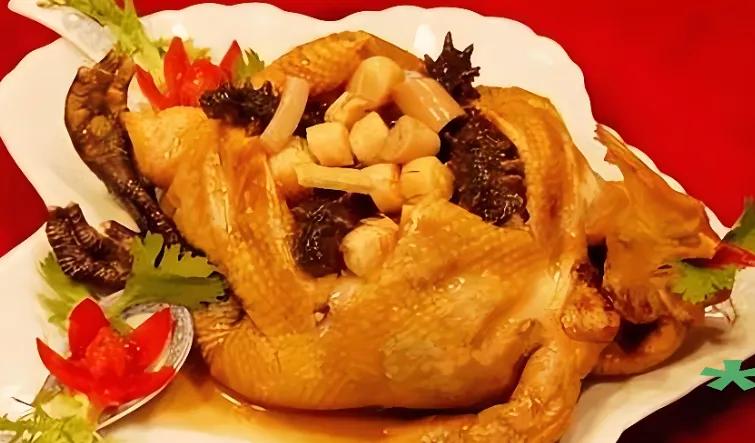 第四美食:夏津布袋鸡这道菜是夏津的一绝,形似布袋,内涵乾坤。推荐去“老德州四合院·德州菜(天衢路店)”,现点现做。鸡肚子里填满了香菇、火腿、干贝等八种馅料,用老汤慢火炖煮,鸡肉酥烂脱骨,馅料鲜香四溢,一口下去满嘴留香,绝对是宴客的压轴大菜。
