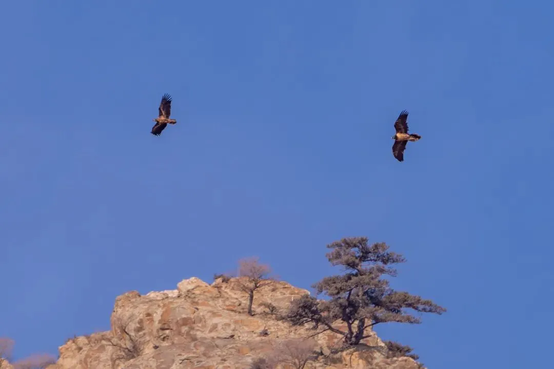 苍头燕雀、中华朱雀、赤颈鸫、石鸡、棕眉山岩鹨等常见鸟类在此栖息繁衍,国家一级保护野生动物秃鹫、金雕、白尾海雕、胡兀鹫、黑鹳为景区增添了生机与活力。而宁夏最具代表性的贺兰山红尾鸲稳定出现,以及槲鸫、红腹灰雀、黑喉岩鹨、田鸫、欧歌鸫等珍稀品种的发现,更是让景区成为鸟类爱好者的天堂。