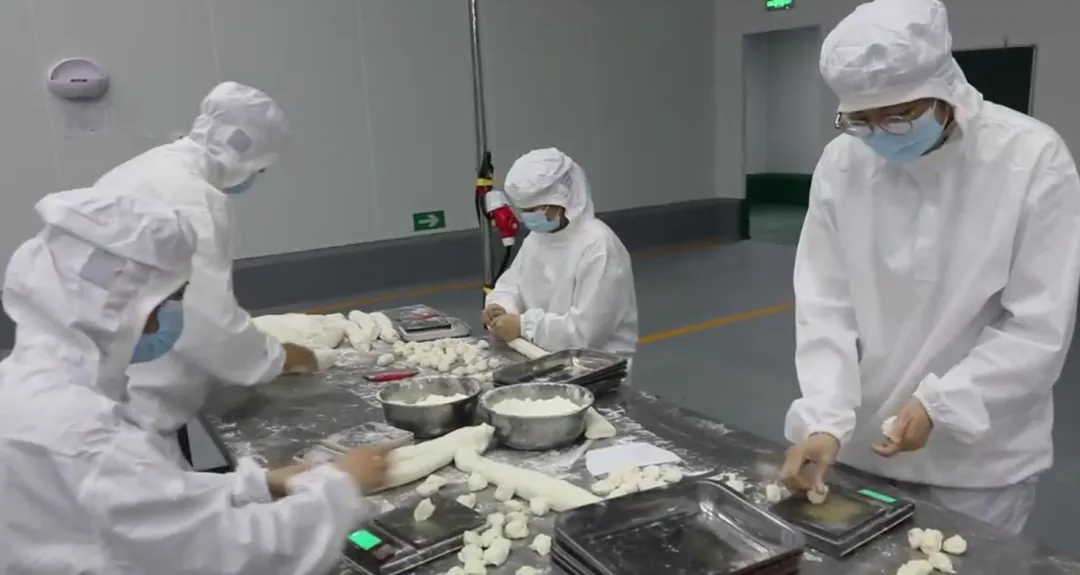 走进麦之谷言的生产车间,你会被它繁忙的生产场景震撼:近百个穿着白色工作服、戴着口罩的师傅,围在操作台前,手里的动作不停,有的在分剂子,有的在擀皮,有的在包馅,在他们的接力下,一个个皮薄馅大、造型美观的小笼包就成型了。