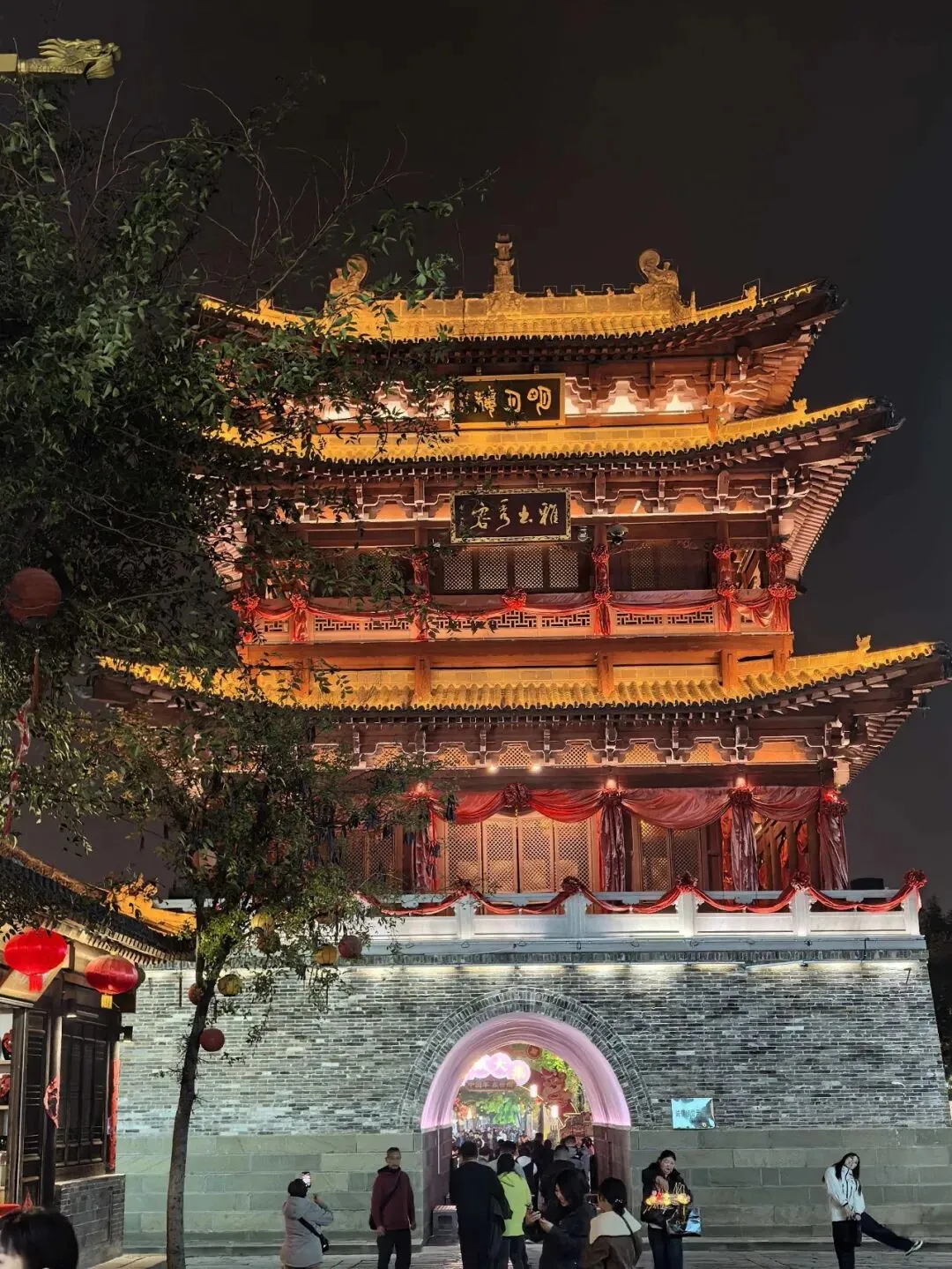在古城门外下车,估摸着街上的表演时间也过了,想着逛逛夜景,慢慢走到美食街,过了饭点儿可以从从容容吃点喝点。