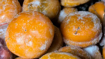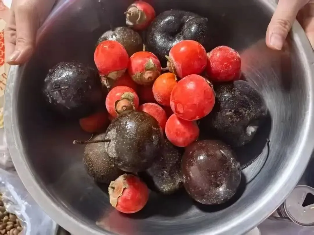 冻柿子有“冬日冰激凌”的美誉,是东北最受欢迎的冬季水果之一,冻过的柿子不仅不会发涩甜度也提高了许多,蜜汁、果肉、冰碴儿混合在一起美味十足。
