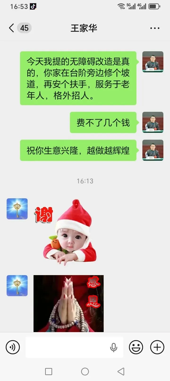作为一个即将步入老年行列的残疾人,连迈台阶都很困难,我深深地感受到无障碍设施的重要性,我提出了“无障碍改造”这个词汇,得到了王平院长的点赞和领导们的认可,《中华人民共和国无障碍环境建设法》的普及,正体现着以人为本的温度。我与李逵酒店总经理王家华就此话题深入交流,她家的酒楼建在半山腰,门前台阶高耸,此前并未意识到无障碍设施的必要性,甚至她半开玩笑说:"你若来,我背你上去。”座谈会后,我给她发了一则短信:“今天我提的无障碍改造是真的,你家如果在台阶旁修条坡道、加装扶手,既能服务老年群体,更能吸引更多游客。”得到了王总的感谢与采纳。