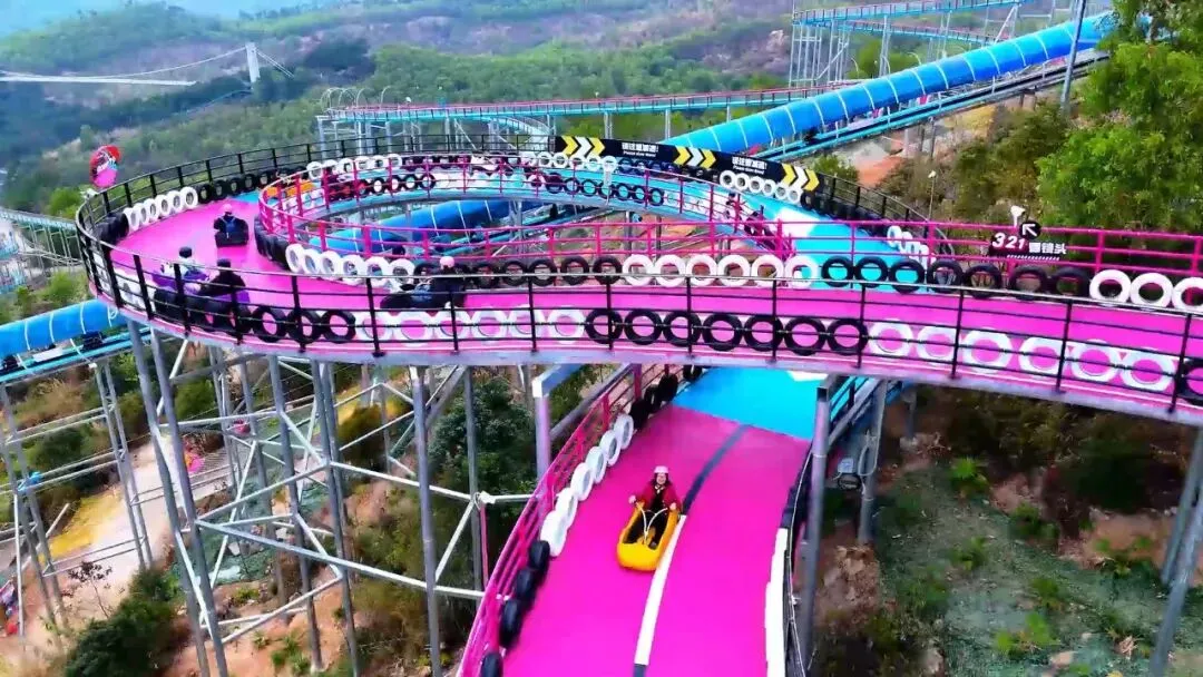 凌空式设计打破地形限制,钢结构架空赛道无需破坏植被,完美融入山林景致。游客驾驶滑车穿梭其间,俯瞰层林叠嶂,沉浸式感受速度与自然的碰撞。赛道可灵活融入S弯、波浪段、转盘等多样元素,兼顾家庭亲子的轻松体验与年轻群体的刺激需求,全客群适配拓宽客流基础。