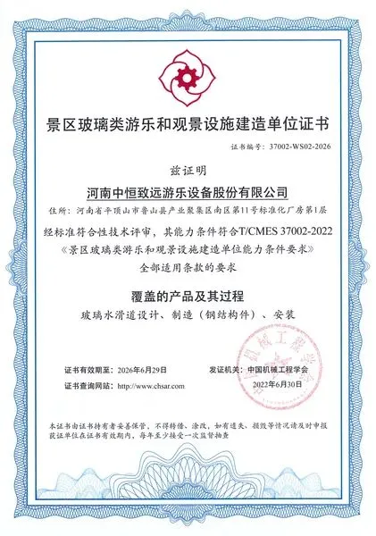 河南中恒致远游乐设备股份有限公司是一家颇具规模的玻璃水滑道生产制造商,同时也是国家玻璃水滑道标准参与制定企业。主要业务包括景区规划设计、投资建设、运营管理、旅游装备制造等业务。