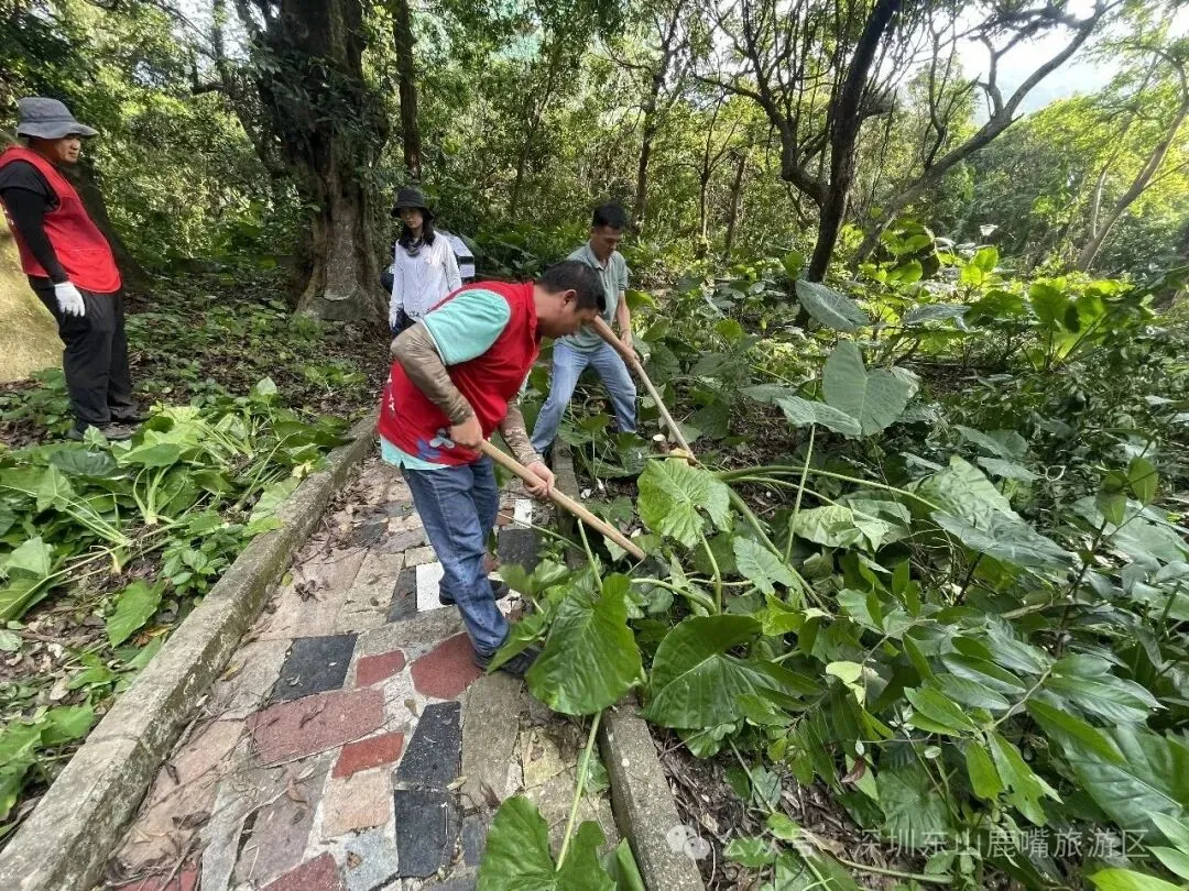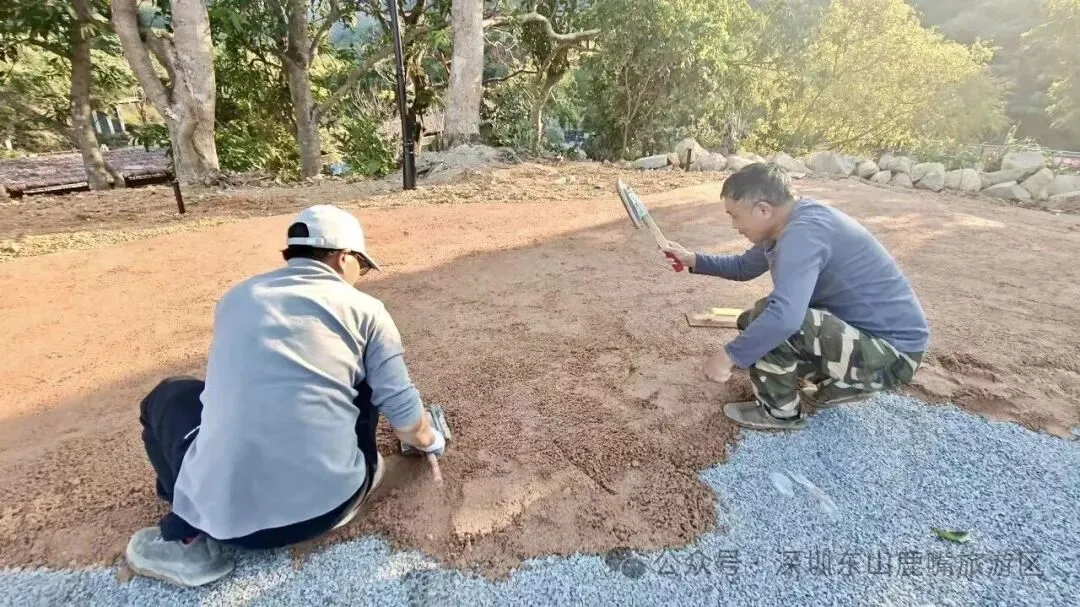 在被誉为“深圳最美溪谷”的天然潭旁,热心村民戴杜扬正带着施工队清理杂草、平整土地,铺设石子路。一个环溪流的萤火虫星空露营地和法式台地花园,即将在景区“上新”。