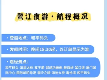 小编提醒:点击下方名片,关注【厦门攻略通】公众号,在聊天框回复【鹭江夜游】获取厦门鹭江夜游优惠购票入口+免费政策、航行班次+路线、取票登船地址、登船要求等!