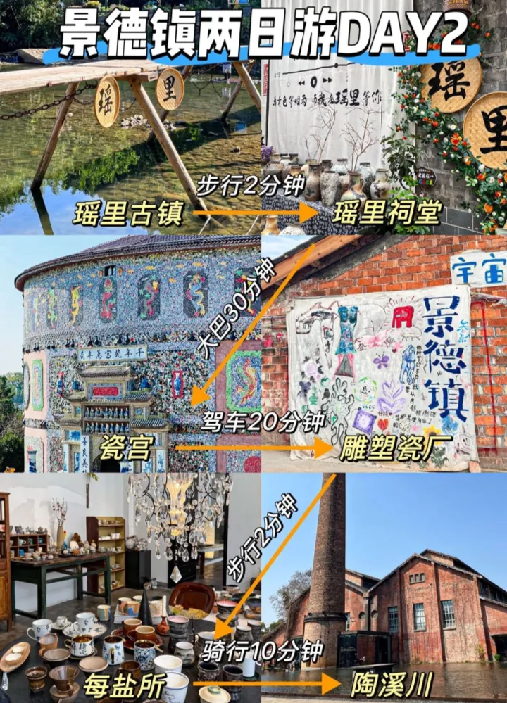 2026年旅游第1站!!景德镇!!📝路线安排 🔘Day1:陶瓷博物馆——陶阳里——御窑博物馆——抚州弄——三宝村——陶阳新村 🔘Day2:瑶里古镇——瑶里祠堂——瓷宫——雕塑瓷厂——每盐所——陶溪川 🏠住宿指南 建议选择在陶溪川/人民广场附近,交通便利,吃喝玩乐也很方便! ✅景德镇美食打卡 食酒倉串燒·深夜食堂·酒场、明洞王妃家烤肉、贰层楼大排档、丘釉·景德Bistro·本地特色菜、诚信油条店、七中小肉、胡子麻辣、小毛老面汤包、谭婆饺子粑…