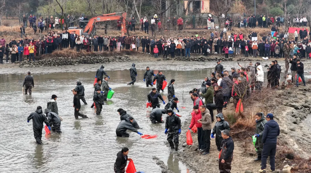“开塘捉年鱼咯!”一声吆喝,是大别山年俗的开场戏。冬日鱼塘水汽氤氲,乡亲们身着防水衣裤,挥网、捞鱼、欢呼,肥美的鱼群在网中跳跃,溅起的水花里,全是“年年有余”的期盼。捉到的年鱼,炖一锅奶白鱼汤,或是腌成腊鱼挂在檐下,一口鲜醇,便是家乡的味道。