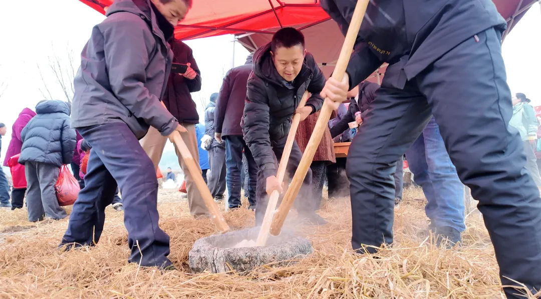 “咚咚咚”的木槌声,是大别山最动听的年音。蒸熟的糯米倒进石臼,乡亲们合力捶打,软糯的米团裹上白糖、黄豆面,入口即化,暖意直达心底。孩子们围在一旁踮足期盼,欢声笑语里,藏着最纯粹的团圆欢喜。