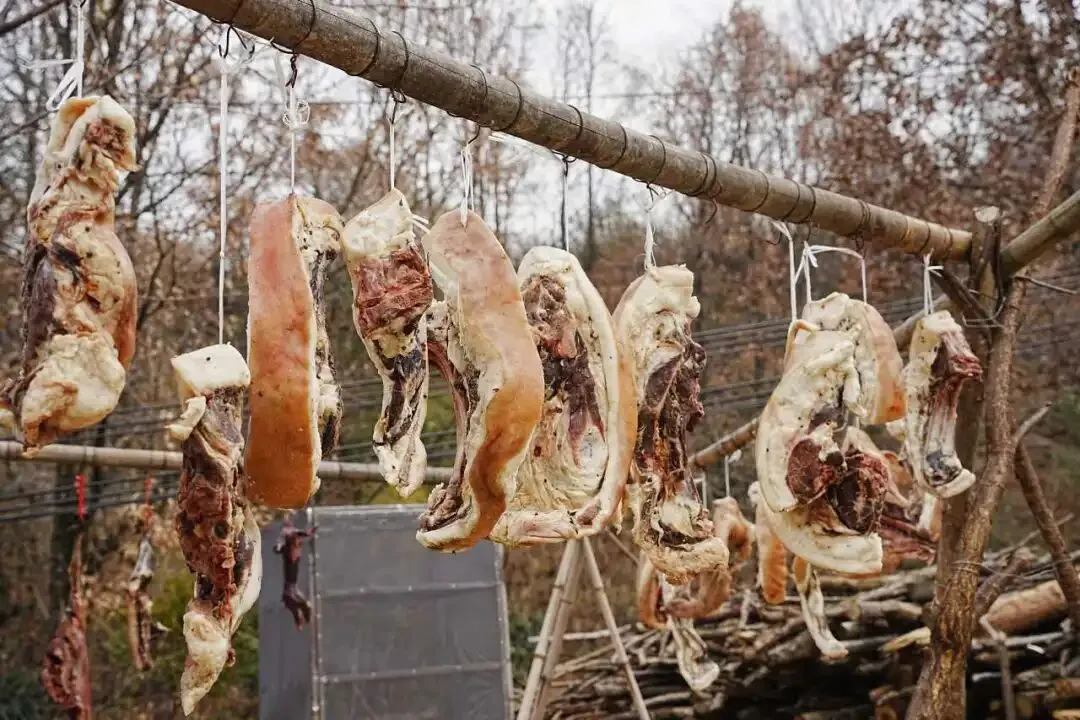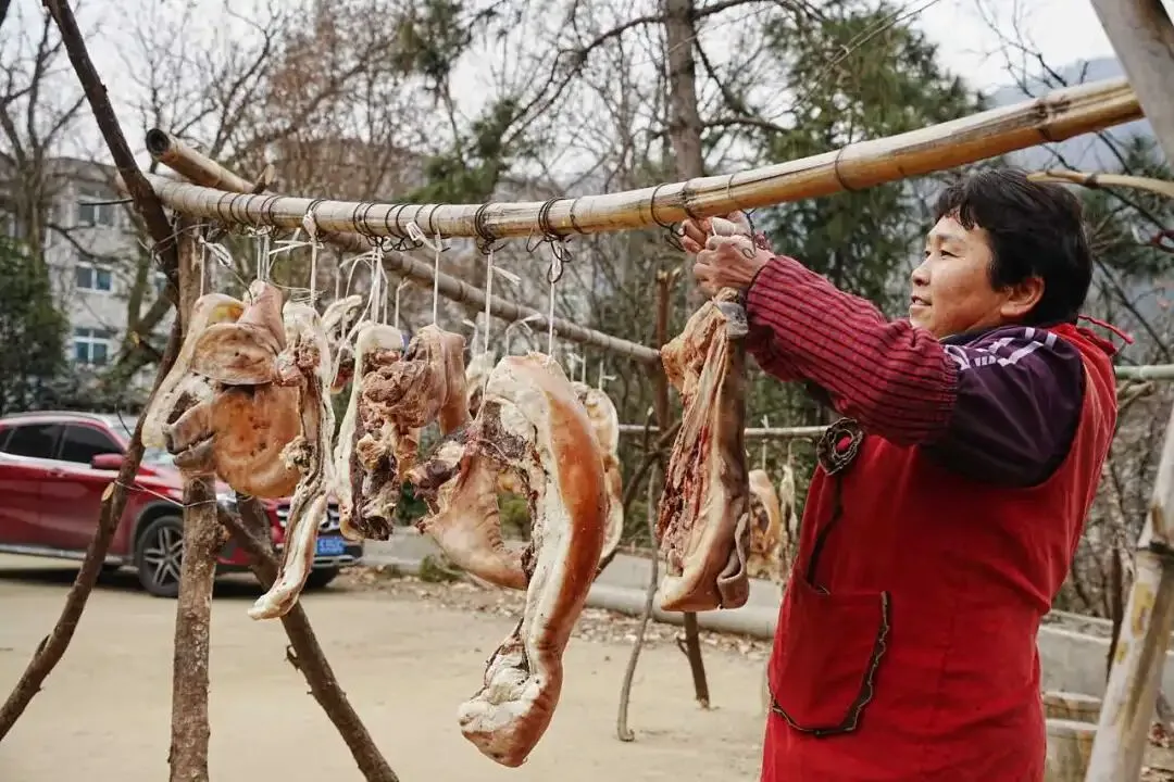 腊月的大别山,最动人的风景莫过于家家户户屋檐下的腊味。腊肉、腊鸭、腊香肠一串串挂满檐角,在冬日暖阳下泛着油光,寒风一吹,醇厚的肉香漫遍街巷,藏着乡亲们对来年的满满期盼,也是刻在心底的家乡年味。
