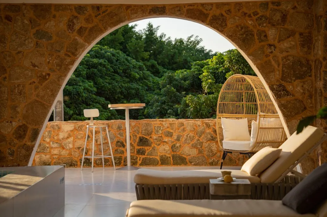 12间雅致客房,解锁舒适旅居体验。部分房型设置独立泳池与泡泡浴缸,超大落地窗引山海风光入室。