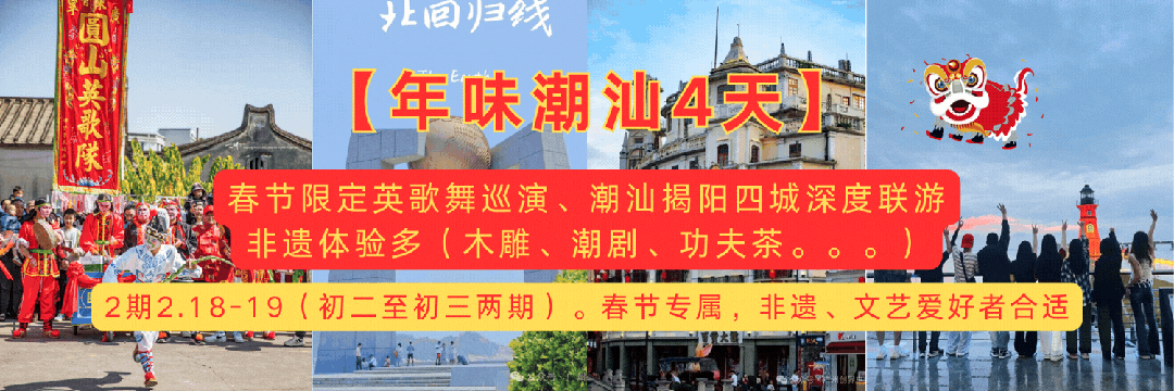 非遗英歌舞巡演+潮州古城+南澳岛+揭阳,聚焦春节民俗与深度文化。