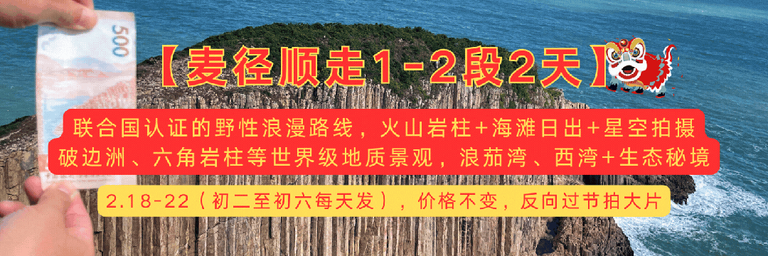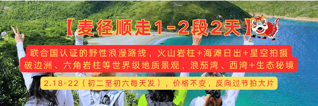 穿越全球TOP20的麦理浩径精华段(1-2段),打卡联合国地质公园、破边洲六角岩柱、浪茄湾“香港马尔代夫”、西湾营地星空露营。