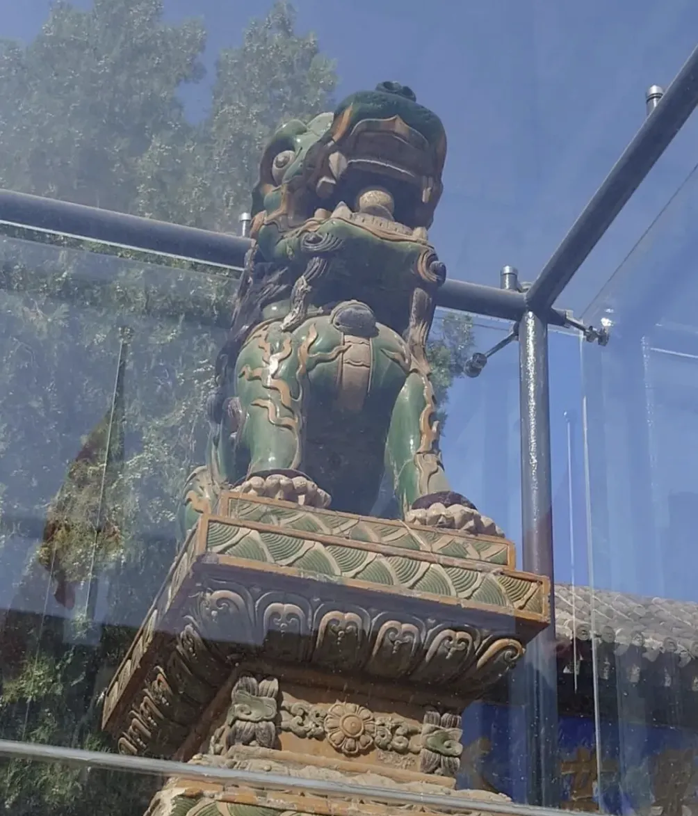 庙内还留存有丰富的文物遗存,堪称一座小型的“露天博物馆”。其中有石狮三对、石旗杆一对、清代石碑七通、石经幢二座、石雕垂花门二座、石雕栏杆二组、琉璃望天狲一对,还有铜鼎一座、铁狮一对、铜钟一口。这些文物造型精美,工艺精湛,不仅展现了古代工匠的高超技艺,更承载着不同历史时期的文化内涵。比如木质的棂星门,外附石柱,上横石额,柱顶雕有“阿婆罗”;四柱三楼式的牌楼,中间二柱正反两面各刻楷书楹联一副,下置抱鼓两面,浮雕蟋螭忍冬,上部为重檐瓦顶,每一处细节都彰显着古代建筑的独特魅力。