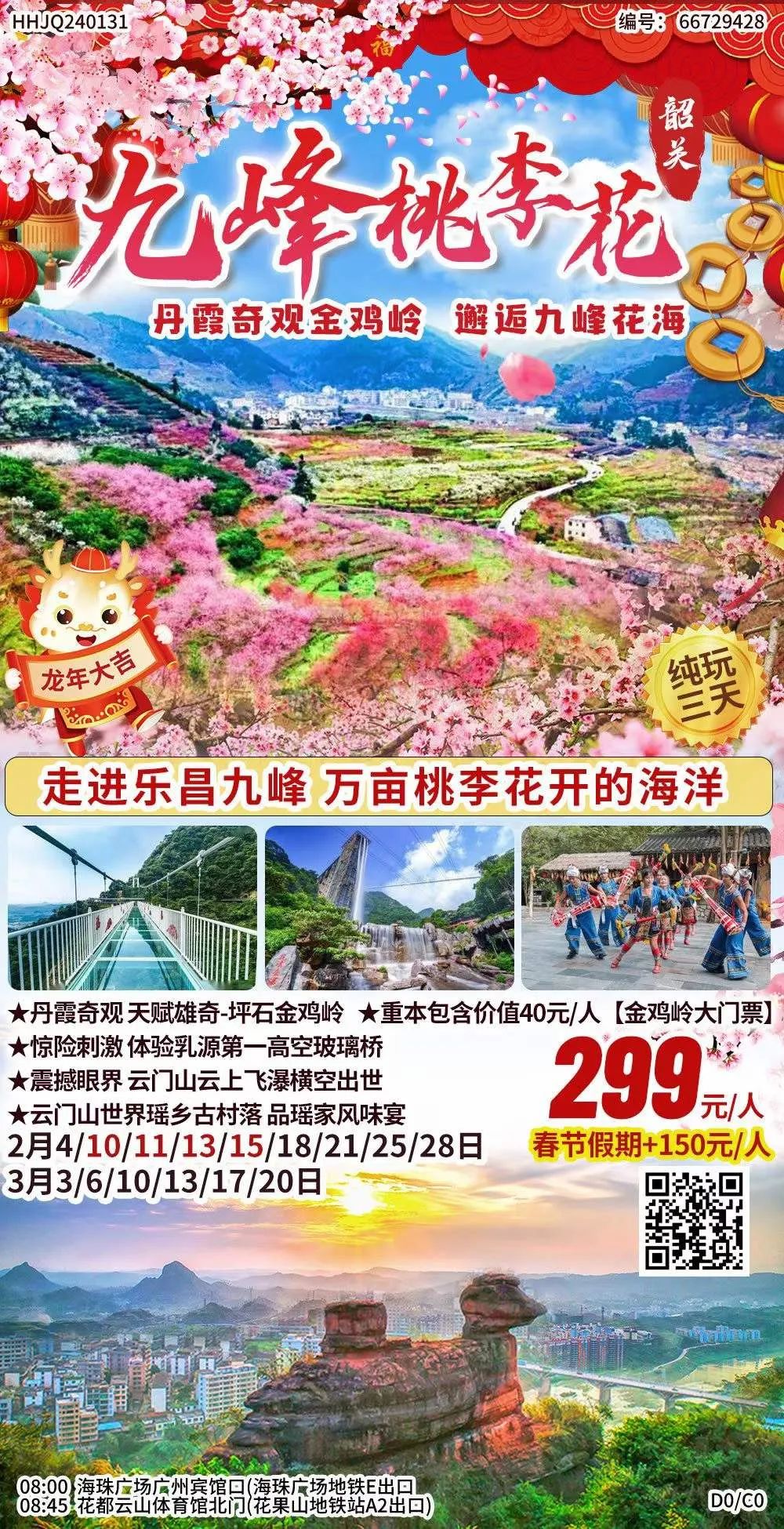 您现在的位置是:首页 > 国内旅游目的推荐 > 正文 国内旅游目的推荐 【跟团游】【九峰桃李花海3天】食足3餐 品地道瑶味美食~云门山 高空玻璃桥 观云上飞瀑;九峰山 邂逅万亩桃花李花海洋! admin2024年02月08日 06:30:50国内旅游目的推荐173 ‼2月 九峰桃李花海3天?¥299 食足3餐 品地道瑶味美食?九峰山 邂逅万亩桃花李花海洋?丹霞奇观 天赋雄奇--金鸡岭⛰云门山 高空玻璃桥 观云上飞瀑***部分图文来源于网络,如有侵权请联系我们删除***可添加客服微信详询 转载请说明来源于"旅荐网",部分内容转载自网络,如有侵权请联系qlwl@foxmail.com删除 本文地址:https://www.15386.cn/post/8932.html 上一篇 事关多个景点!福州春节期间这些路段将实行交通管制! 下一篇 2024石家庄十大最值得去的景点排名榜单揭晓!西柏坡纪念馆位列榜首! 相关文章 2026韩国春季赏花旅行指南:3~5月各时段赏花名胜推荐 井陉县旅游全攻略:太行深处的千年遗珠 汉川市垌塚镇桃花文化旅游季出行指南来啦,线上直播同步开启~ 首尔旅行攻略 惠州旅游美食攻略!假期Citywalk保姆级攻略!!! 【旅游资讯】春风十里 天津等你丨宁河“春江花月宴”全攻略,速来收藏 国外旅游|不会点咖啡?咖啡店英语全攻略(超实用) 川西旅游攻略 西藏拉萨|大学生的两天一夜超绝旅行(附攻略) 邵阳美食和旅游攻略 发表评论 取消回复 评论列表 这篇文章还没有收到评论,赶紧来抢沙发吧~