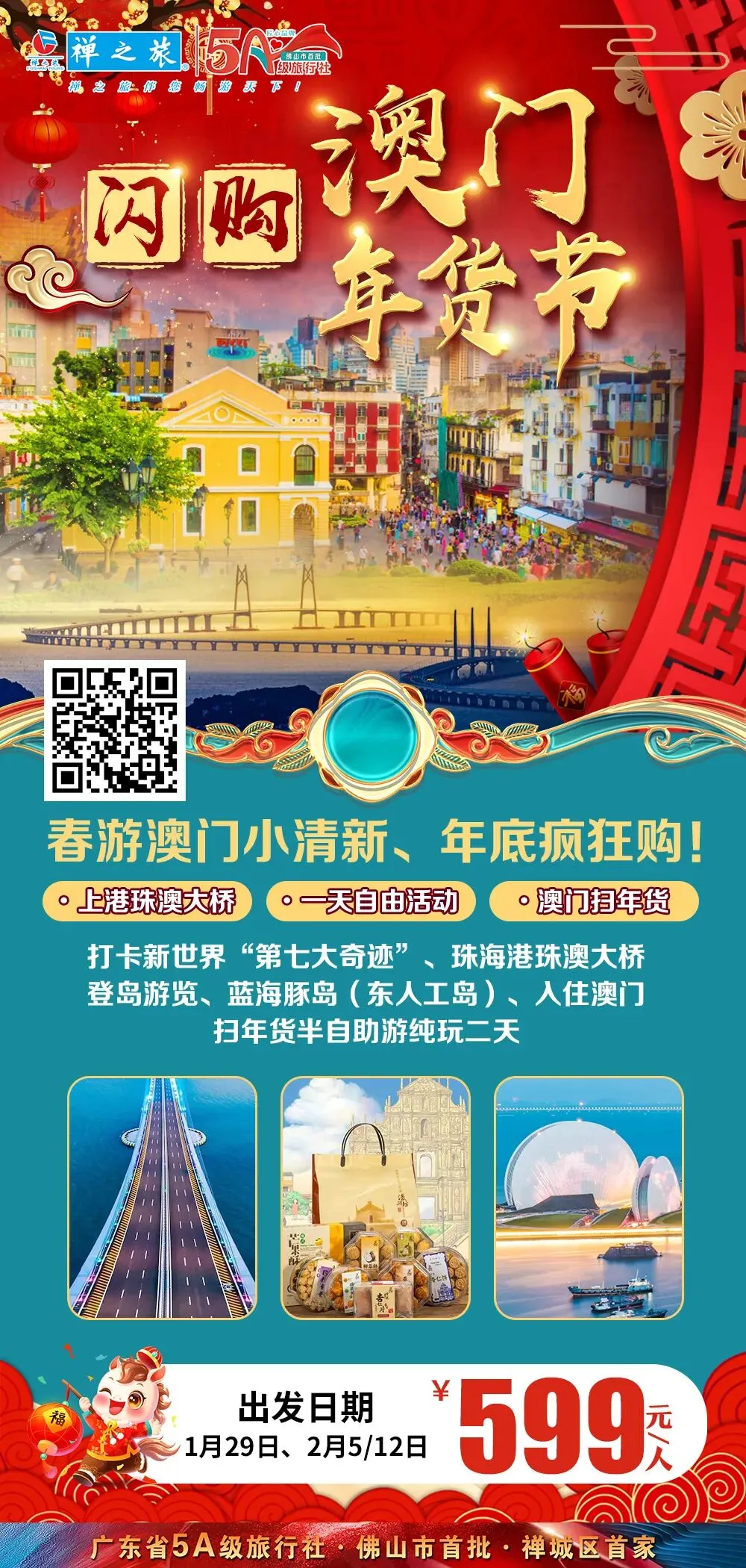 澳门年货节开抢!一天自由玩转小清新景点,一天澳门老街里淘年货!住得舒心、玩得尽兴,两天纯玩解锁小清新与年味狂欢,等您来打卡!