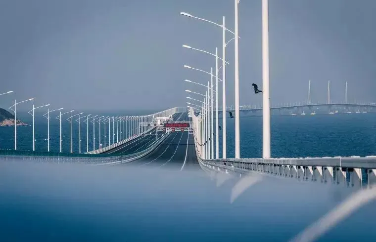 驱车行驶在这座世界级大桥上
