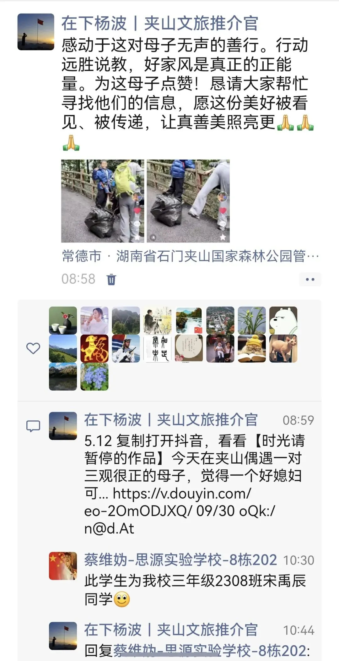 校方表示,此次表彰是对学生美德的肯定,也是对全体师生的激励。学校将以榜样为引领,把文明理念融入日常教育,让绿色环保成为校园新风尚。夹山管理处在表扬信中,也对学校的育人成果与家庭的悉心培养致以感谢。文明旅游需要你我同行,优良家风值得代代相传。这位8岁少年的文明之举,犹如一颗充满生机的种子,正将爱护环境、奉献社会的正能量,悄悄播撒进更多人的心田。