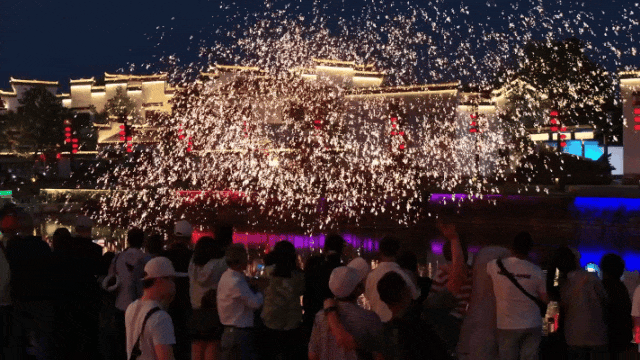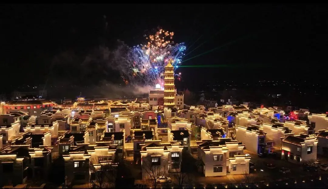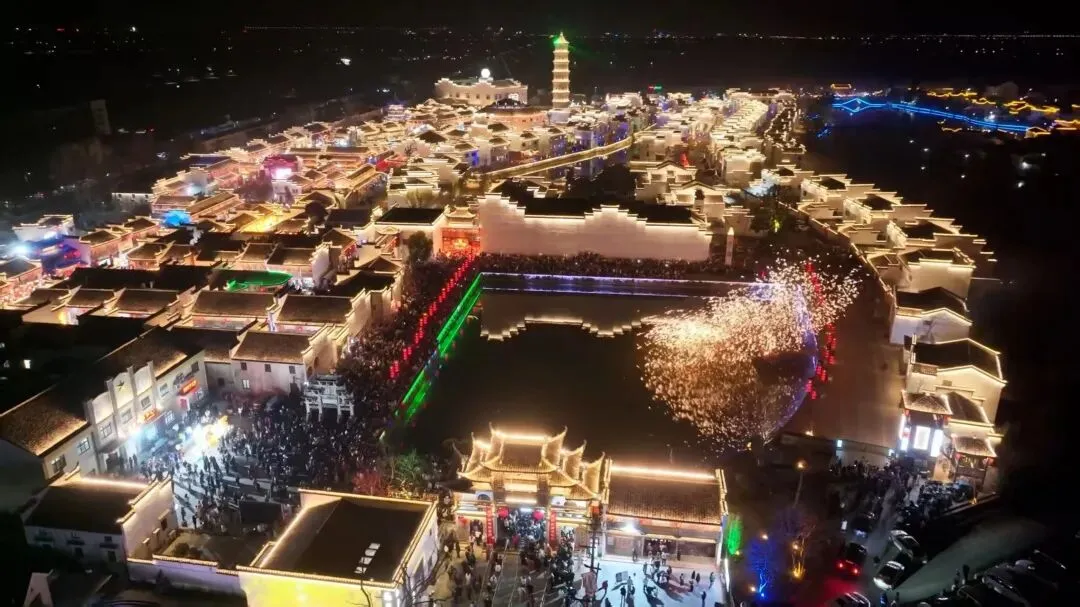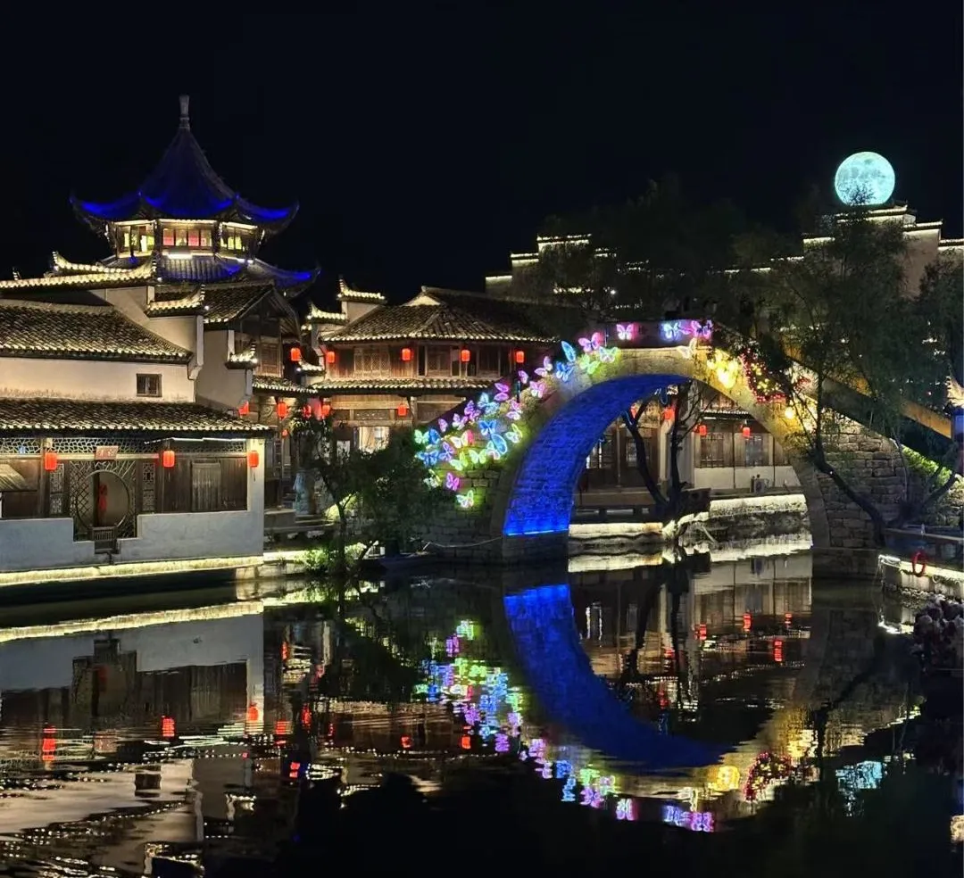 犁桥水镇之夜,璀璨灯光交织