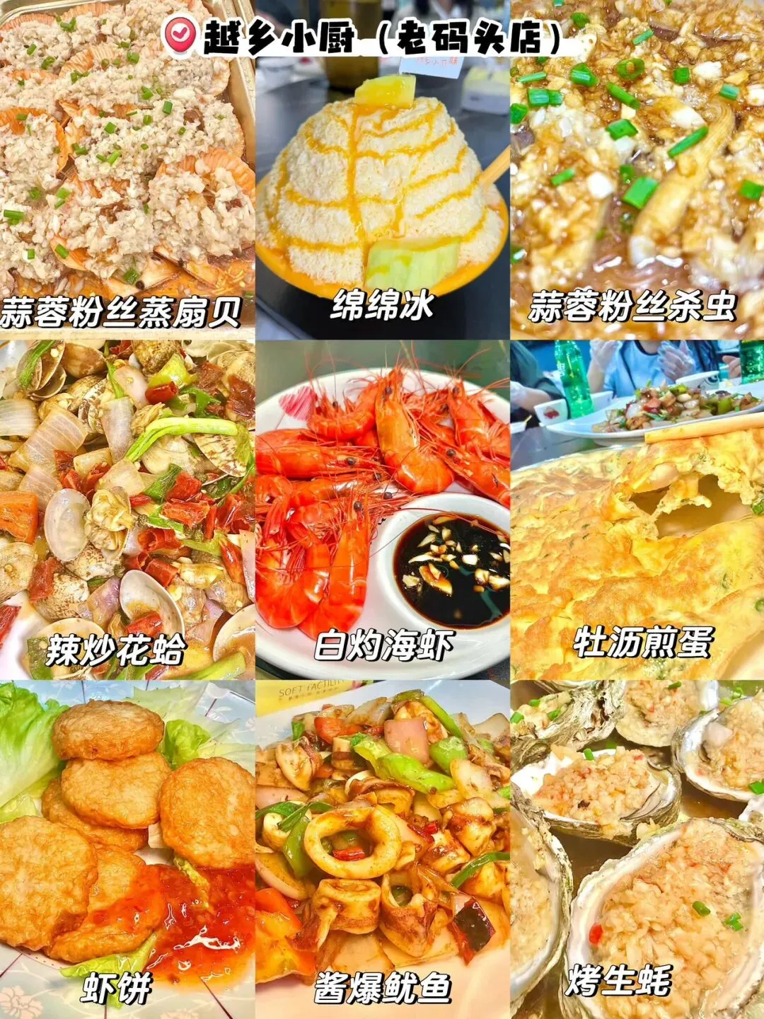 蒸沙虫、海鸭蛋、海鲜、螺蛳粉、糖水、斑斓
