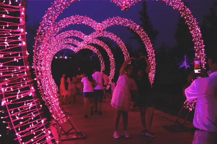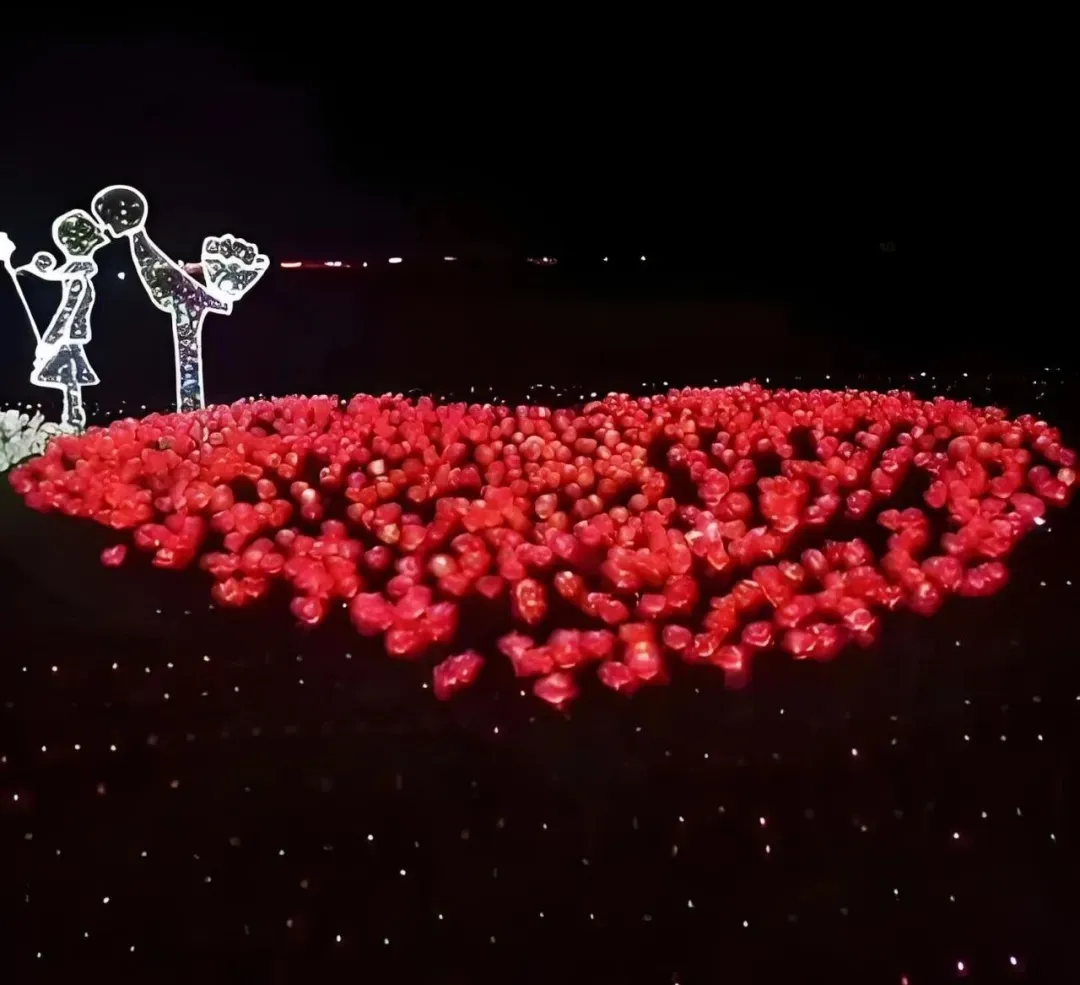 999朵玫瑰编织的心型灯海徐徐绽放,