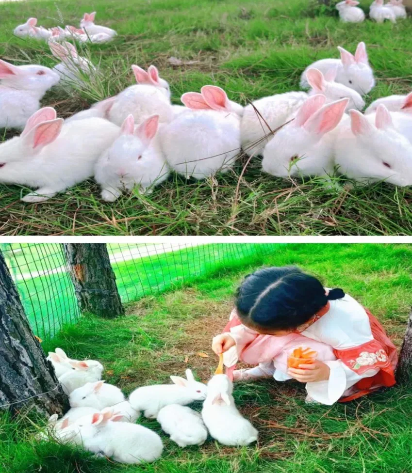 除了兔子我们还有梅花鹿、孔雀、鸵鸟、鸽子等