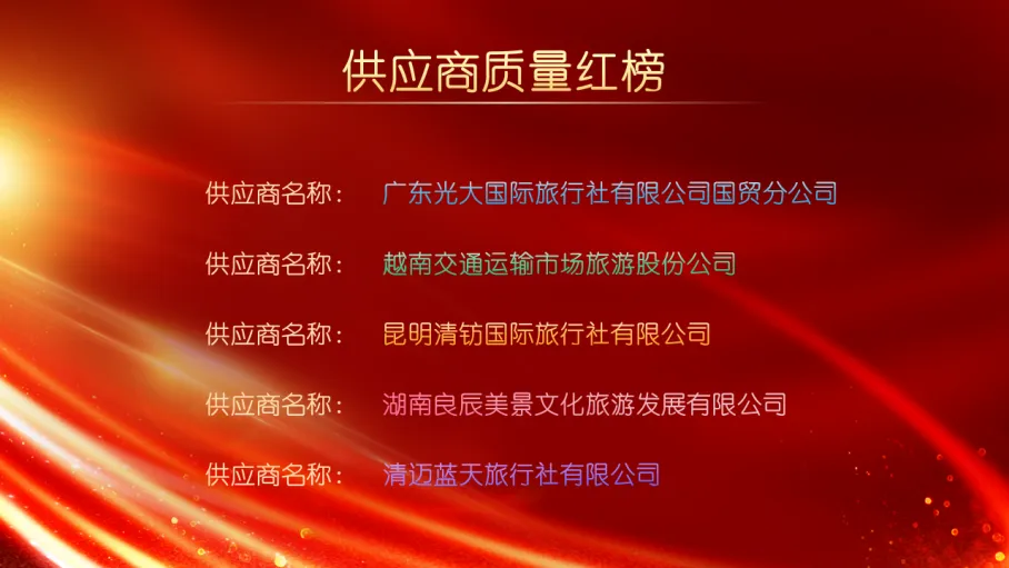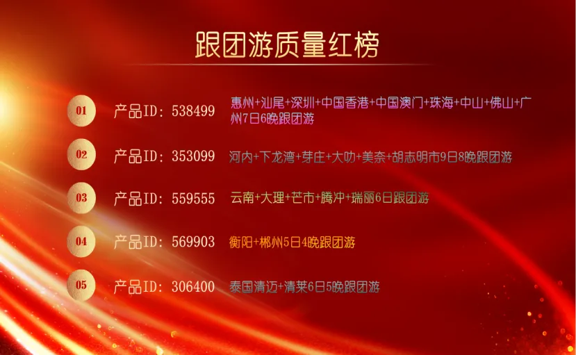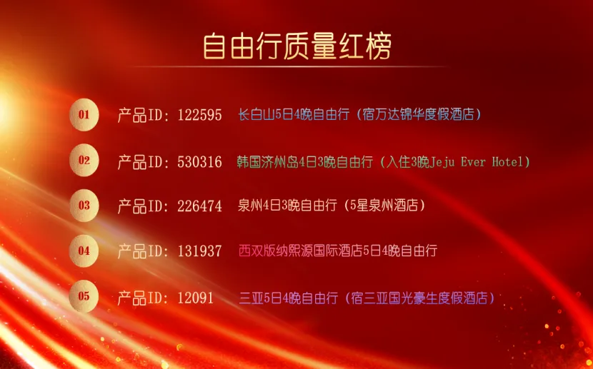 本期的上榜产品为接待量排名以及满意率排名前五位,且无投诉的跟团游、自由行产品以及优质供应商排名: