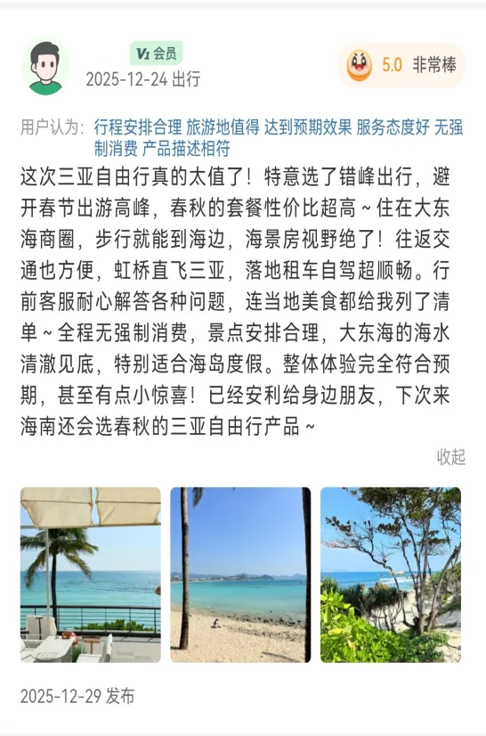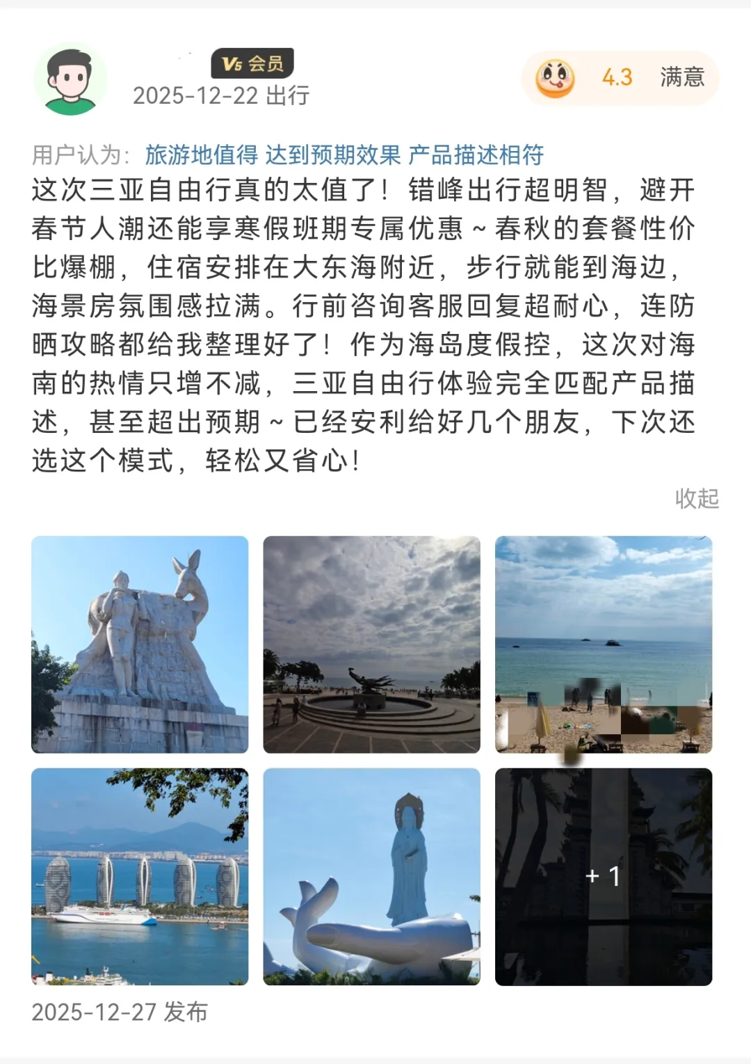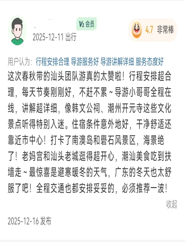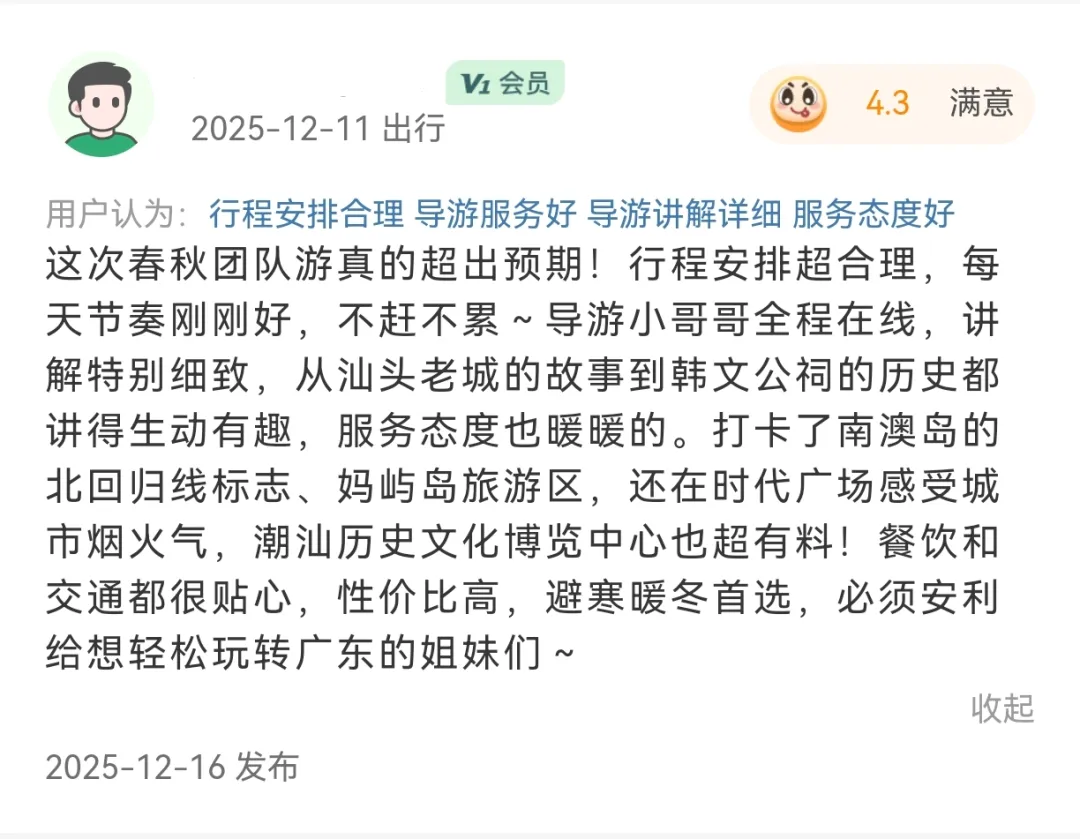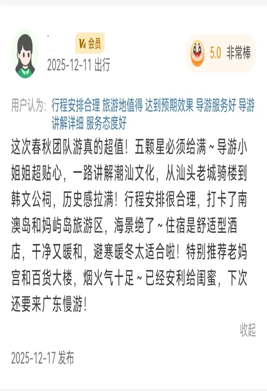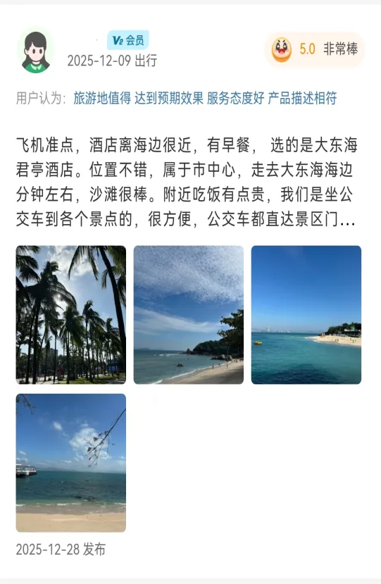服务的初心,藏在每一次用心付出里;品质的答案,写在游客的真实评价中,以下精选游客精彩点评,感受服务背后的温度与认可。